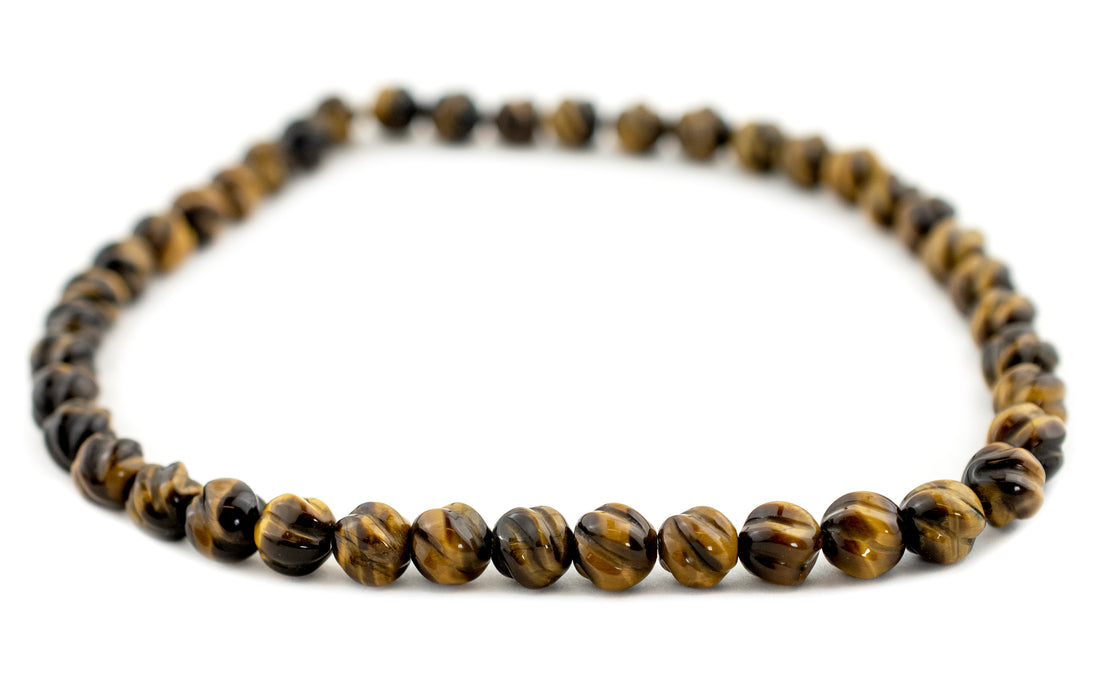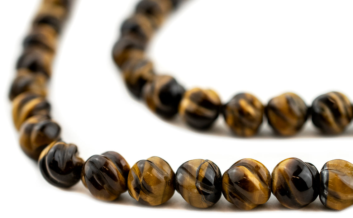 Carved Spiral Round Tiger Eye Beads (10mm)