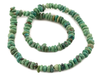 Check out this great strand of stone beads made of authentic turquoise. The unique color will add an unmistakable accent to your jewelry designs. These beads are cut and polished in a natural chips shape. Turquoise stone has been treasured since time immemorial as a protective talisman. Interestingly, it derives it's name in the English language from the Turks who were the first to introduce it to the Western World. Beads measure approximately 2-4 x 6-7mm, with holes measuring 1mm. Each strand is approximately 16" long.