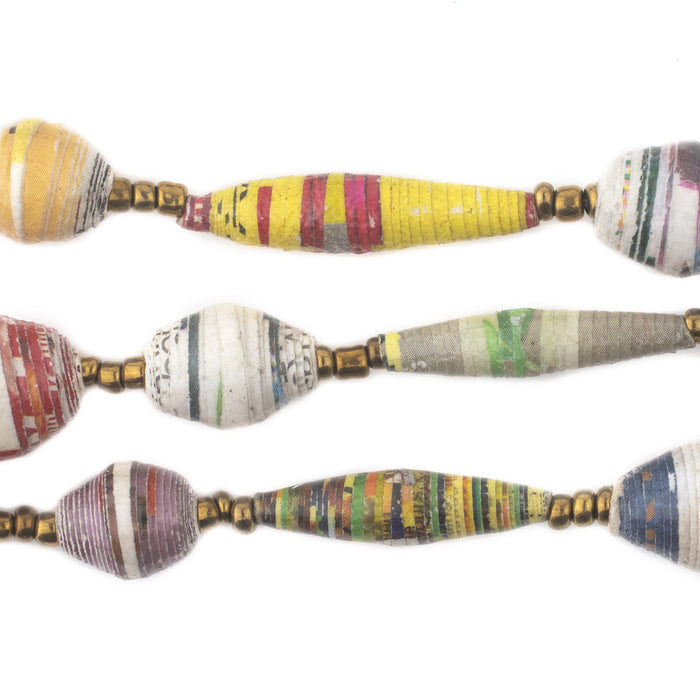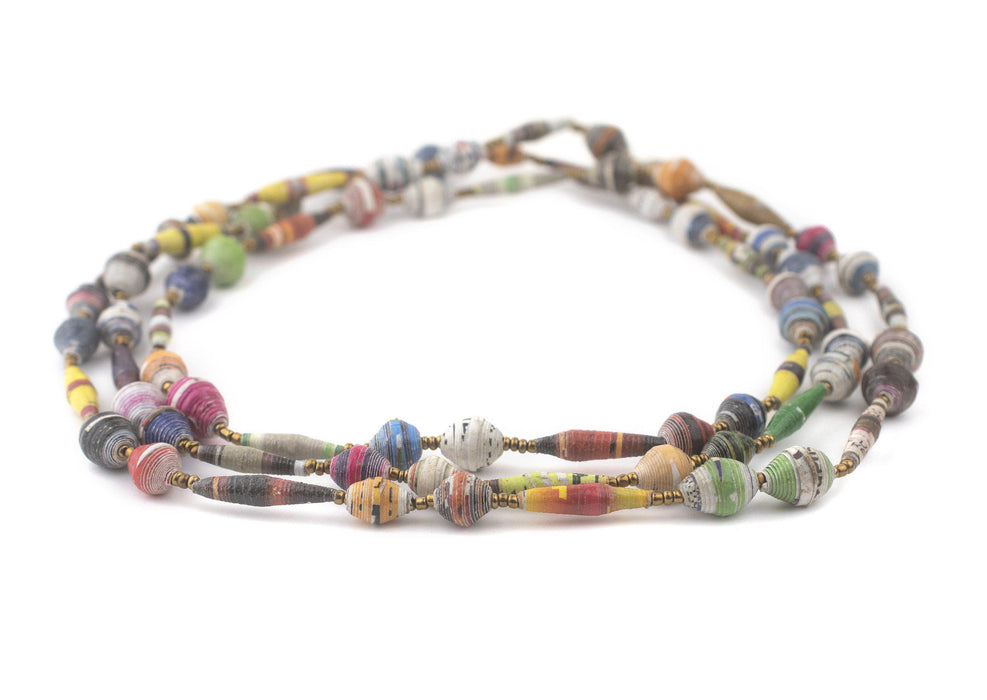 Beautiful strand of elongated multicolor recycled paper beads. These beads are made using recycled newspapers by working mothers in Uganda. Each bead is fair trade and handmade with love. Some beads may show slight sign of use, as they have passed through hands at African markets. Beads may vary slightly from photo as each strand is individually made by hand. Beads may vary slightly from photo as each strand is individually made by hand. Beads may vary slightly from photo as each strand is individually made by hand. Medley of beads may vary slightly from photo.