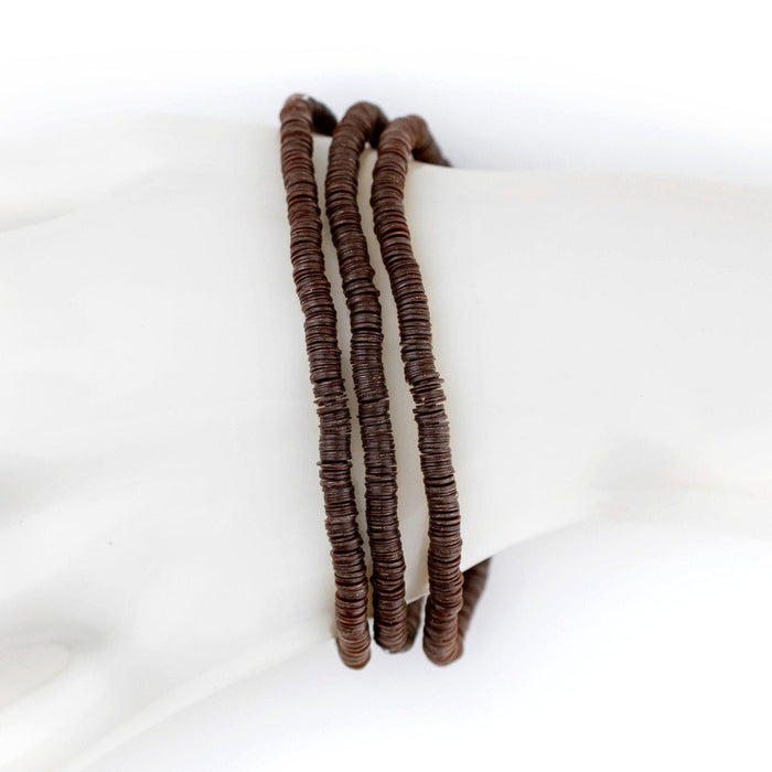 This beautiful piece of jewelry is made using vinyl beads, which are traditional to Ghanaian culture. While vinyl beads are most commonly worn around the waist, these beautiful bracelets pay tribute to West African culture while taking on a more versatile use. Each set of beads is strung on an elastic cord which will stretch over your wrist or ankle. The bracelet has an outer diameter of approximately 7.5 inches. Multiple bracelets may be pictured, however each bracelet is sold individually. Available in twenty different colors. Mix and match your favorite colors to create your own personal stack! The beads can also be repurposed into your own jewelry creations. They measure approximately 4mm in diameter with a hole size of approximately 1mm. Get yours today!