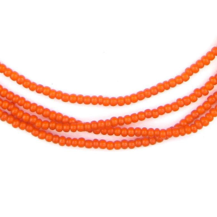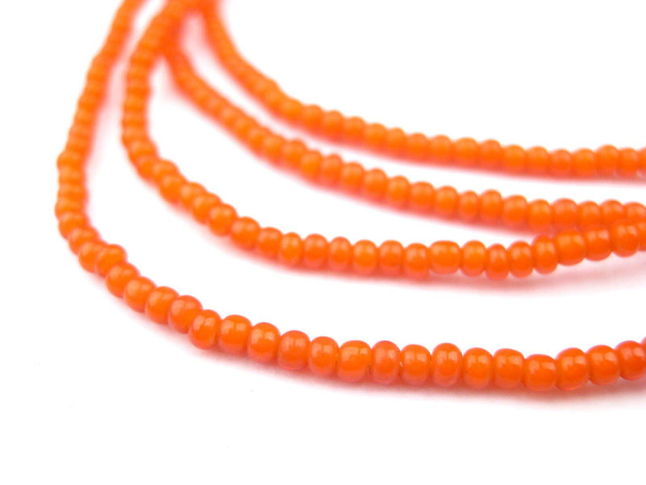 Checkout this beautiful strand of orange color white heart beads! White hearts derive their name from the inner core of opaque white glass that is coated with a layer of translucent colored glass. This process produces beads with a unique character as light passes through the bead. Beads such as these are originally of French or Czech provenance and traded in Africa. This strand measures approximately 21", with individual beads measuring about 2 x 2-3mm.