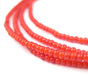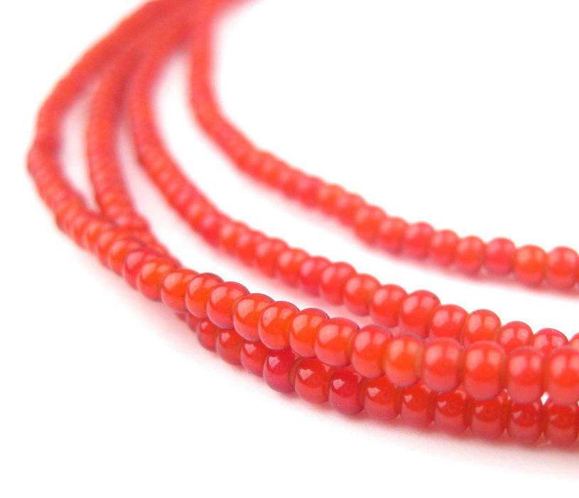 Checkout this beautiful strand of red color white heart seed beads! White hearts derive their name from the inner core of opaque white glass that is coated with a layer of translucent colored glass. This process produces beads with a unique character as light passes through the bead. Beads such as these are originally of French or Czech provenance and traded in Africa. This strand measures approximately 23", with individual beads measuring about 2-2.5mm in diameter. This extra small size is hard to find. Two strands pictured however each strand is sold individually.