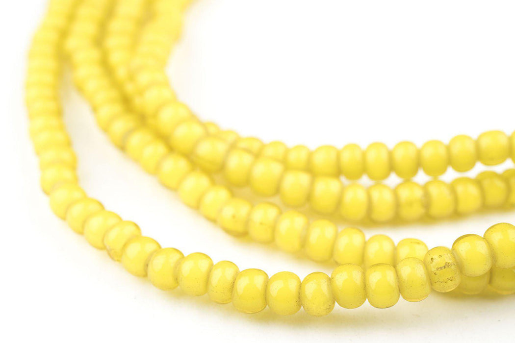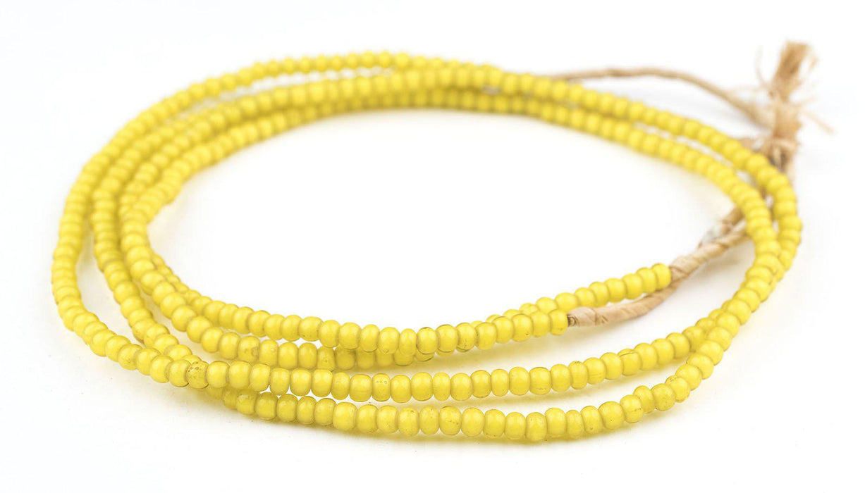Checkout this beautiful strand of yellow color white heart beads! White hearts derive their name from the inner core of opaque white glass that is coated with a layer of translucent colored glass. This process produces beads with a unique character as light passes through the bead. Beads such as these are originally of French or Czech provenance and traded in Africa. This strand measures approximately 25", with individual beads measuring about 3 x 4mm. Two strands pictured. Each strand sold individually.