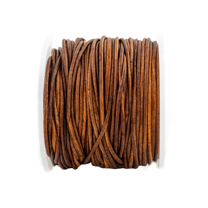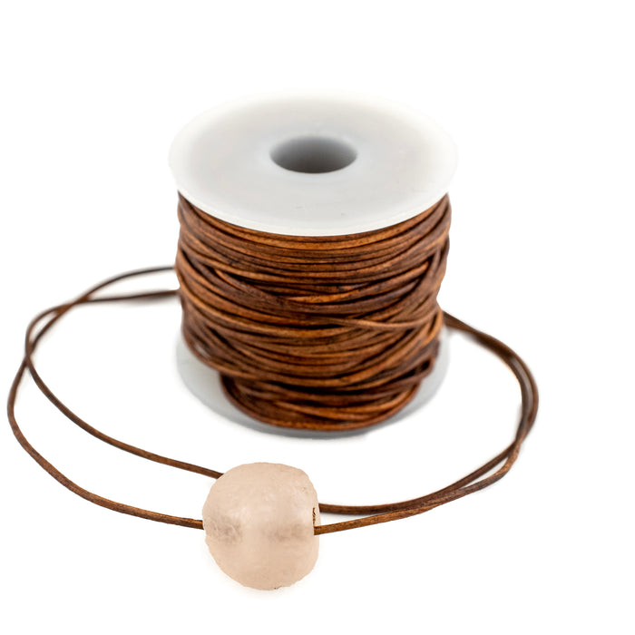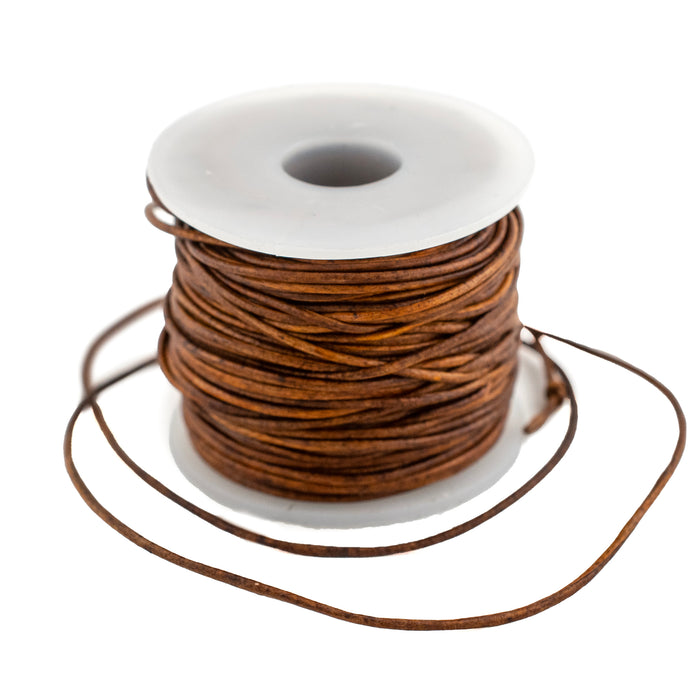 0.8mm Brown Distressed Round Leather Cord (75ft)
