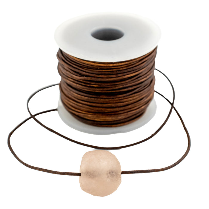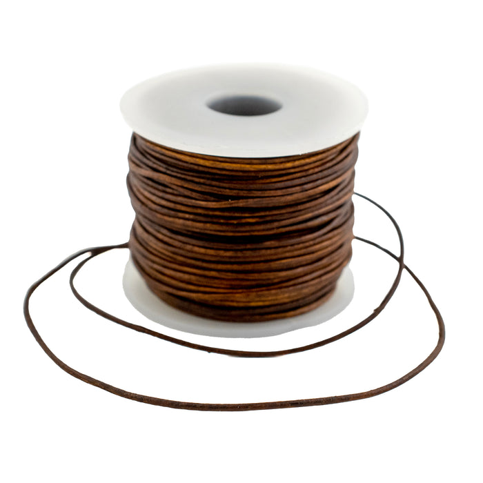 0.8mm Dark Brown Distressed Round Leather Cord (75ft)