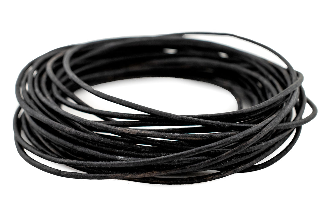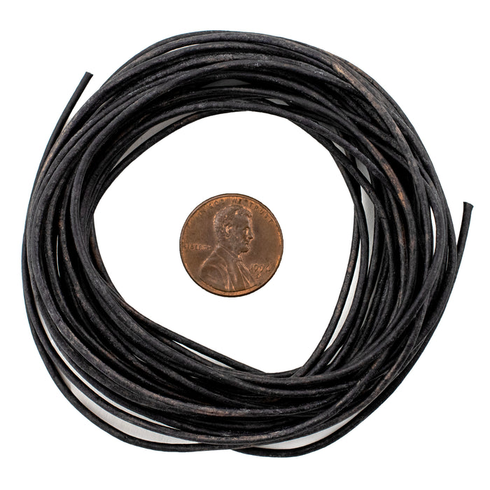 1.5mm Black Distressed Round Leather Cord (15ft)