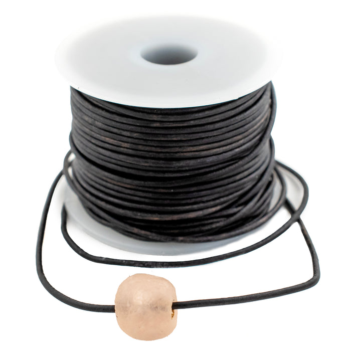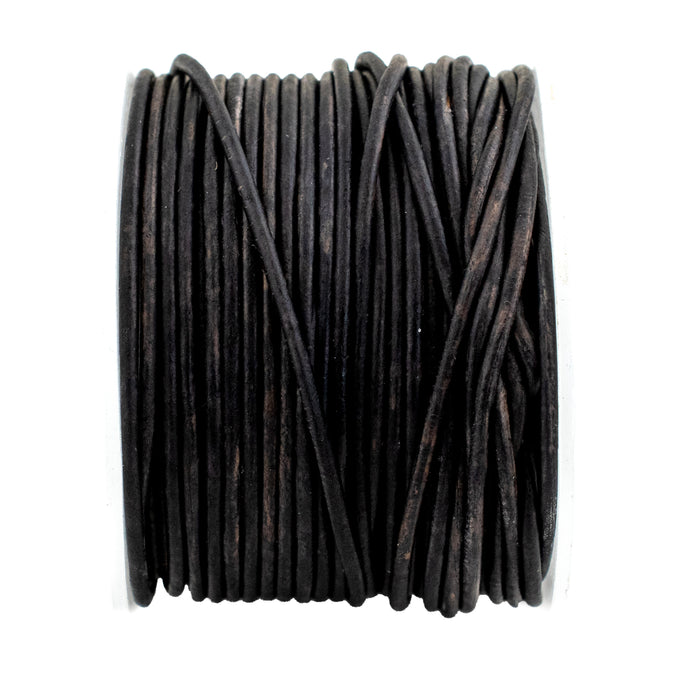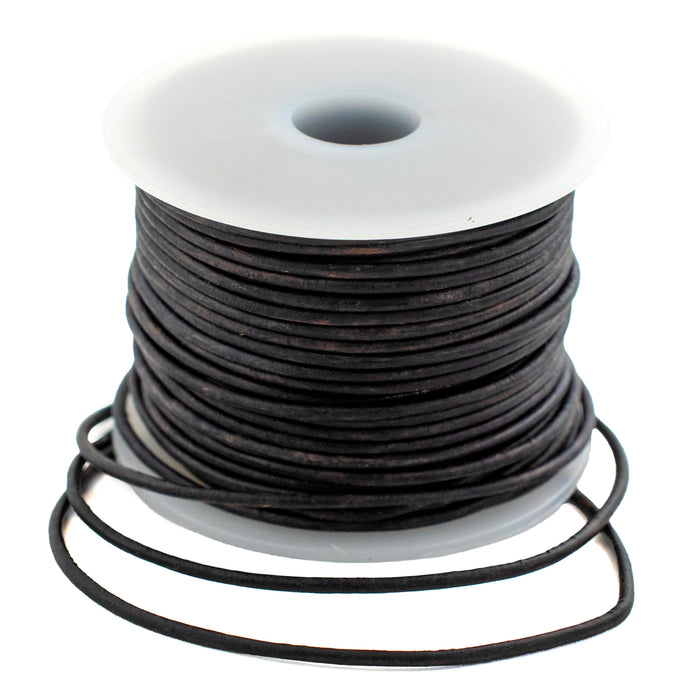 1.5mm Black Distressed Round Leather Cord (75ft)