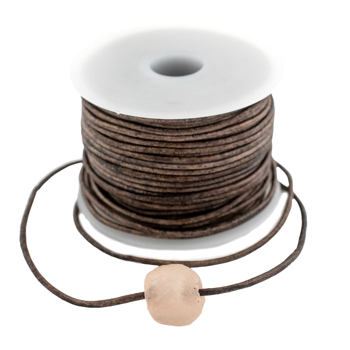 1.5mm Grey Distressed Round Leather Cord (75ft)