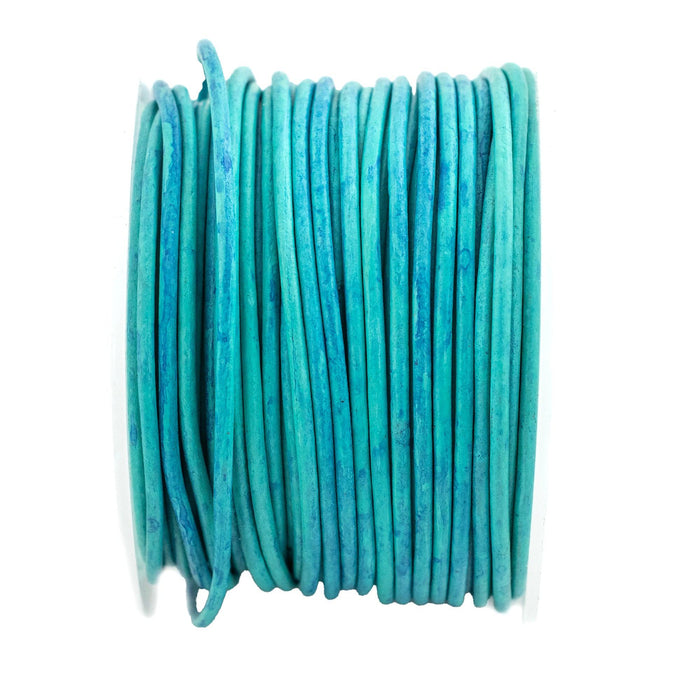 1.5mm Turquoise Distressed Round Leather Cord (75ft)