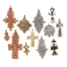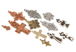 12-Piece Cross Pendant Bundle: Brass, Copper, Silver & Bone