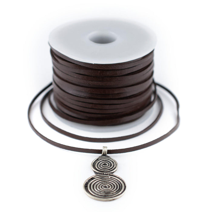 2.0mm Dark Brown Flat Leather Cord (75ft)