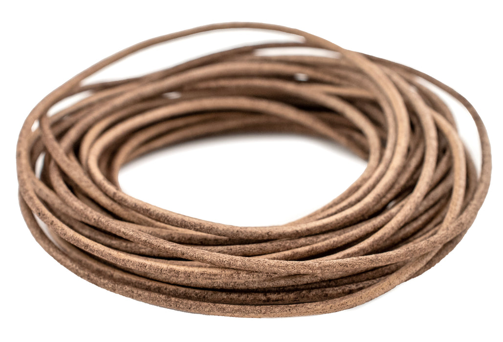 2.0mm Natural Distressed Round Leather Cord (15ft)