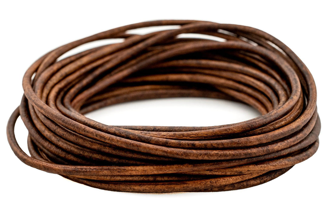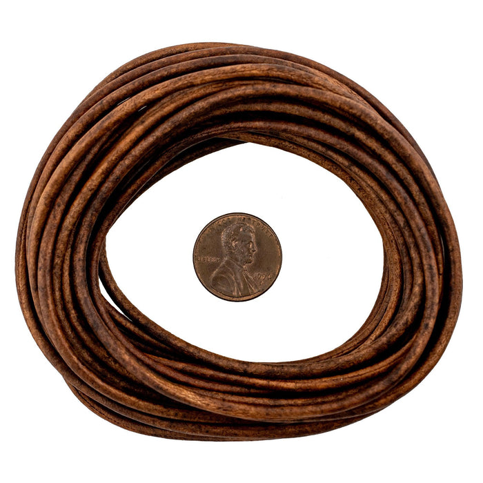 2.5mm Brown Distressed Round Leather Cord (15ft)