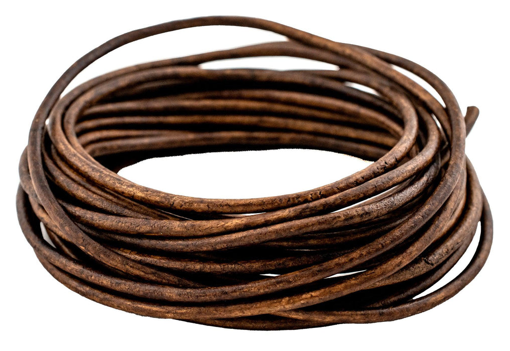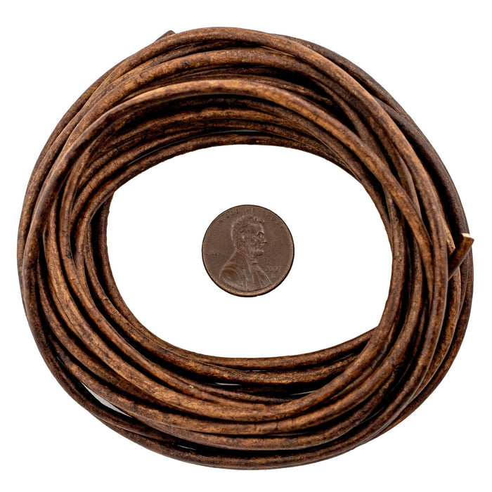 2.5mm Dark Brown Distressed Round Leather Cord (15ft)