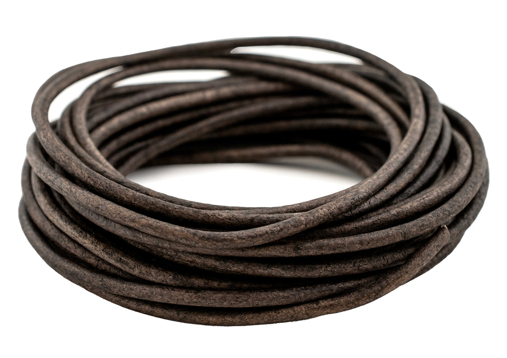 2.5mm Grey Distressed Round Leather Cord (15ft)