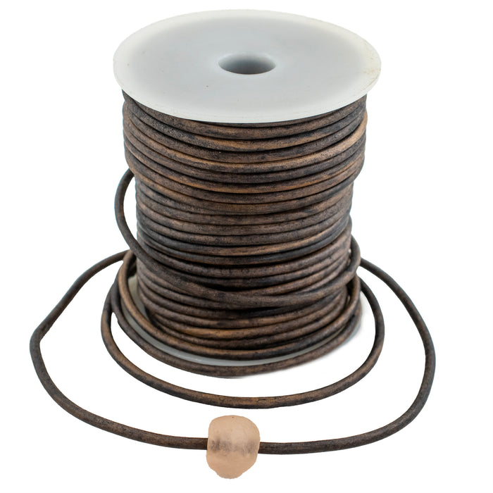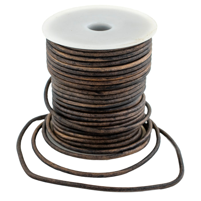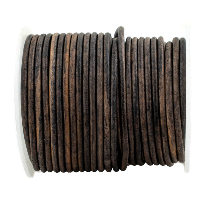 2.5mm Grey Distressed Round Leather Cord (75ft)