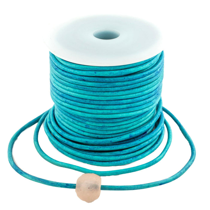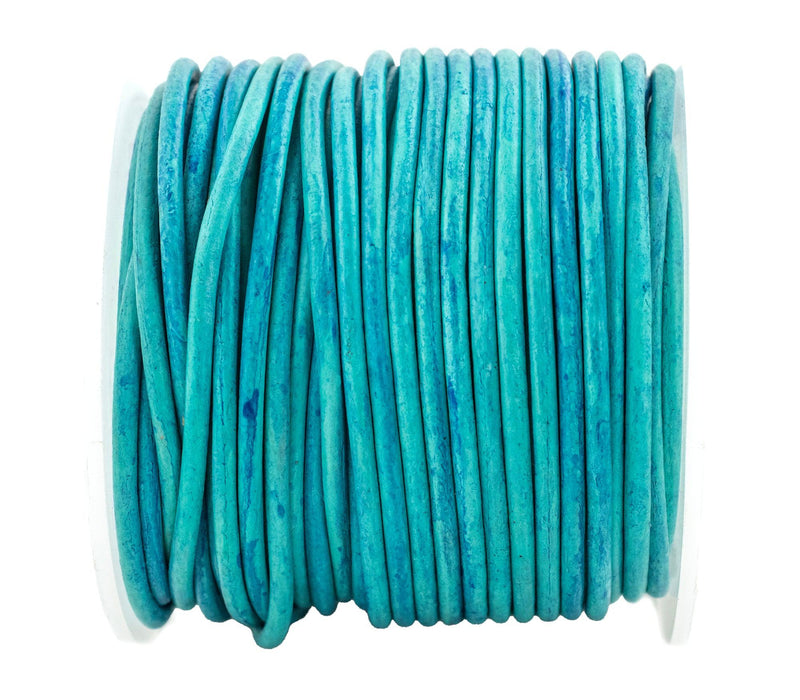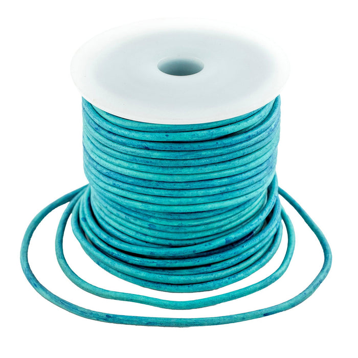 2.5mm Turquoise Distressed Round Leather Cord (75ft)