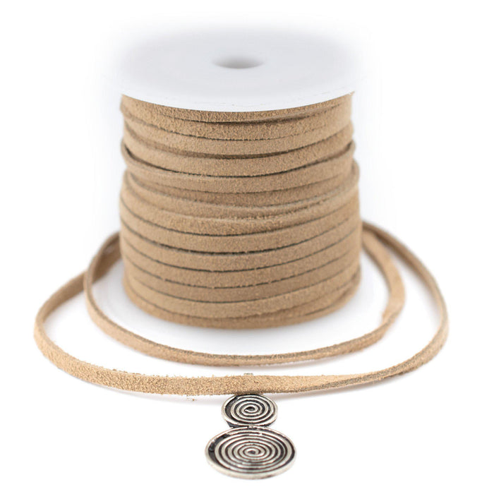 3.0mm Beige Flat Suede Leather Cord (75ft)
