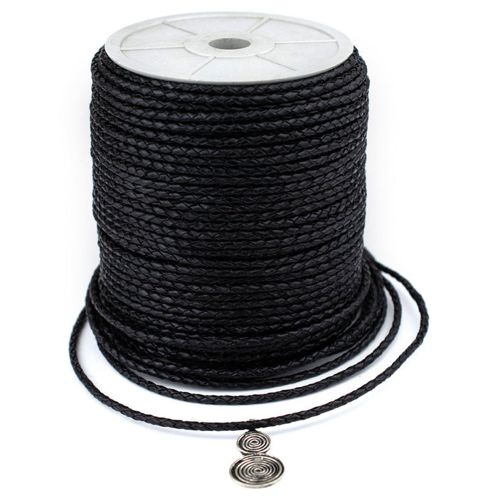 3.0mm Black Round Braided Bolo Leather Cord (3ft)
