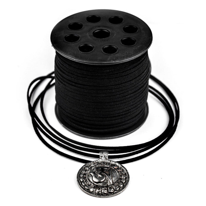 This rustic black cord might have you mistaken for real suede, however this stunning alternative is 100% cruelty free and vegan. Each spool contains 100 yards (300 feet) of high quality faux suede cord, measuring approximately 1 x 3mm in size. Use it to make a quick pendant necklace, or incorporate some into your next jewelry design. Available in multiple colors. We're offering this great cord at a wholesale value to the public. Get yours today! Please note, pendant in photo is for illustrative purposes and is not included in your purchase.