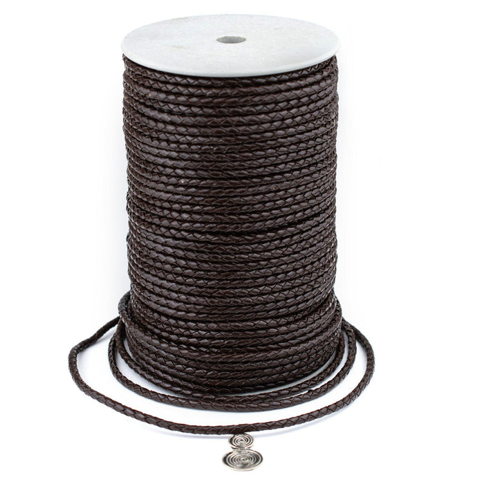 4.0mm Dark Brown Round Braided Bolo Leather Cord (3ft)