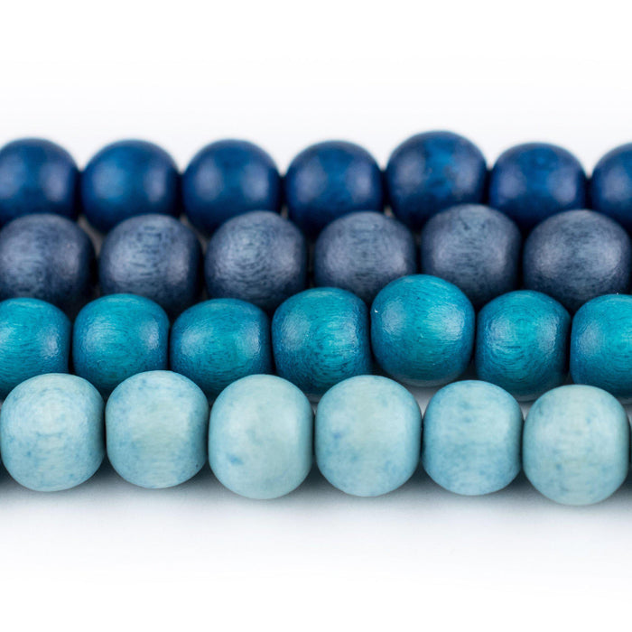 4 Strand Bundle: Round Blue Natural Wood Beads (8mm)
