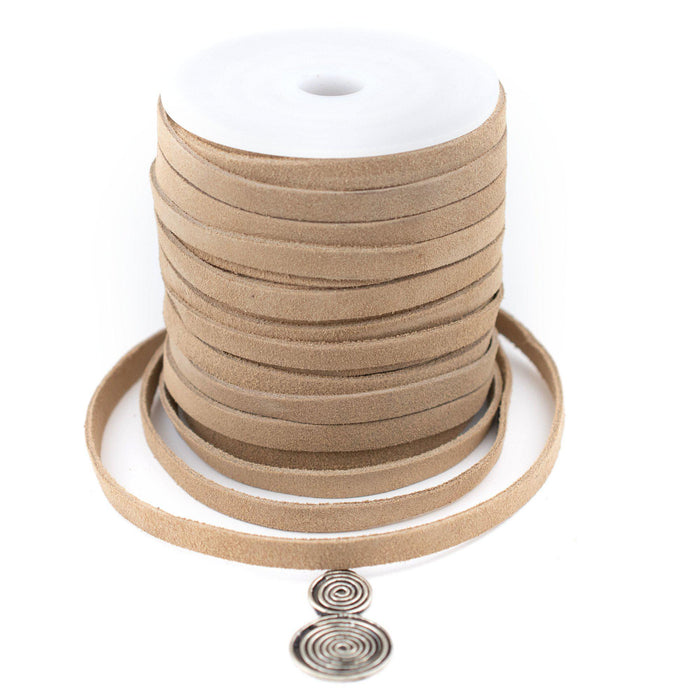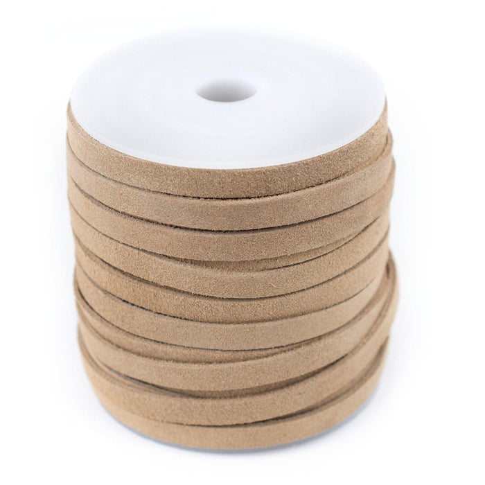 6.0mm Beige Flat Suede Leather Cord (75ft)