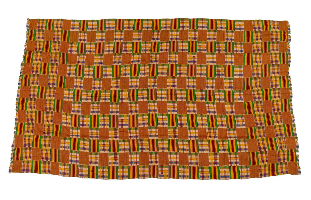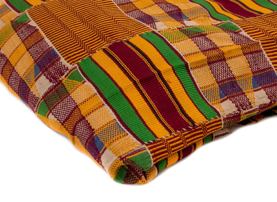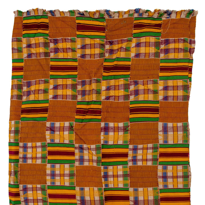 Admire the rich colorful beauty of this authentic vintage Ghanaian Kente Cloth. Woven from cotton, handmade textiles such as this play a central role in the artistic tradition of many West African countries where they are traditionally worn as clothing. Kente cloths are made by the Akan people and were traditionally used solely for royal courts and prestigious occasions. Look carefully and you will see that each piece has its own unique and distinctive pattern. This colorful and vibrant fabric can be used for all kinds of unique design projects. Use it as a table cloth, wall hanging, to make custom clothes, or simply as a colorful accent for your favorite room. This cloth measures approximately 47" x 81" and is one of a kind. You will receive the exact cloth shown in the photograph!