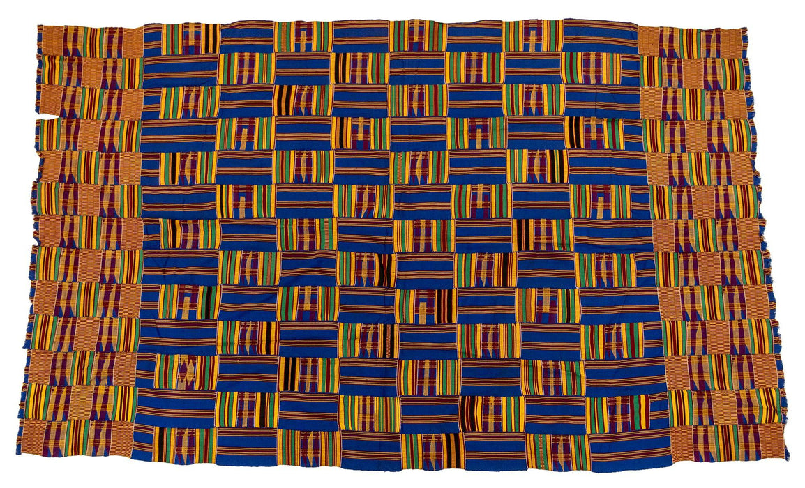 Admire the rich colorful beauty of this authentic vintage Ghanaian Kente Cloth. Woven from cotton, handmade textiles such as this play a central role in the artistic tradition of many West African countries where they are traditionally worn as clothing. Kente cloths are made by the Akan people and were traditionally used solely for royal courts and prestigious occasions. Look carefully and you will see that each piece has its own unique and distinctive pattern. This colorful and vibrant fabric can be used for all kinds of unique design projects. Use it as a table cloth, wall hanging, to make custom clothes, or simply as a colorful accent for your favorite room. Clothes measures approximately 46-47 x 77-79". Each cloth is unique and may vary slightly from photo.