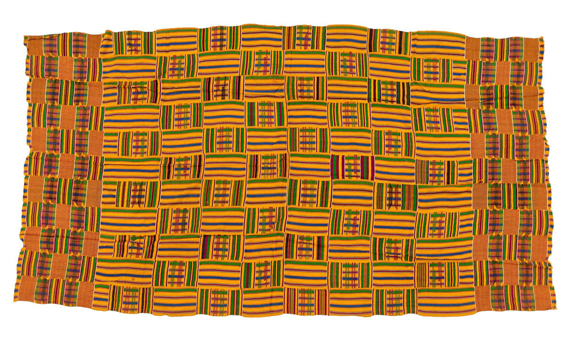 Admire the rich colorful beauty of this authentic vintage Ghanaian Kente Cloth. Woven from cotton, handmade textiles such as this play a central role in the artistic tradition of many West African countries where they are traditionally worn as clothing. Kente cloths are made by the Akan people and were traditionally used solely for royal courts and prestigious occasions. Look carefully and you will see that each piece has its own unique and distinctive pattern. This colorful and vibrant fabric can be used for all kinds of unique design projects. Use it as a table cloth, wall hanging, to make custom clothes, or simply as a colorful accent for your favorite room. This cloth measures approximately 40-44 x 71-75" and is one of a kind. You will receive the exact cloth shown in the photograph!