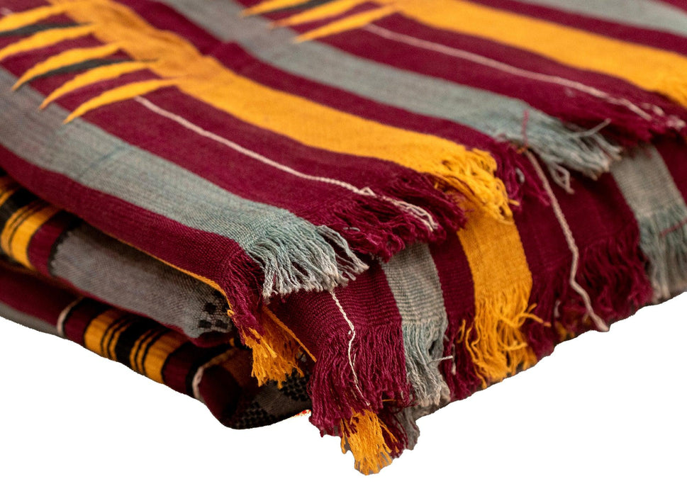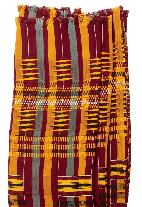 Admire the rich colorful beauty of this authentic vintage Ghanaian Kente Cloth. Woven from cotton, handmade textiles such as this play a central role in the artistic tradition of many West African countries where they are traditionally worn as clothing. Kente cloths are made by the Akan people and were traditionally used solely for royal courts and prestigious occasions. Look carefully and you will see that each piece has its own unique and distinctive pattern. This colorful and vibrant fabric can be used for all kinds of unique design projects. Use it as a table cloth, wall hanging, to make custom clothes, or simply as a colorful accent for your favorite room. This cloth measures approximately 40-44 x 71-75" and is one of a kind. You will receive the exact cloth shown in the photograph!