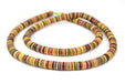 Take a look at this beautiful strand of African vinyl beads in a multicolor color. Beads such as these are found in Ghana and Nigeria where they are sometimes worn as waist beads. Older versions of vinyl beads were said to be made from recycled phonograph records. This strand measures approximately 30" long with individual beads measuring 1 x 10mm. These beads are light and fun to wear and also versatile for jewelry designs. Each strand is sold individually.