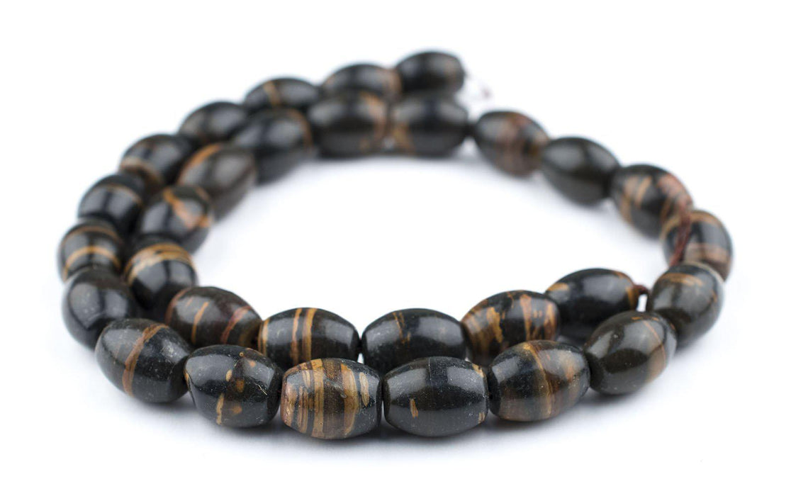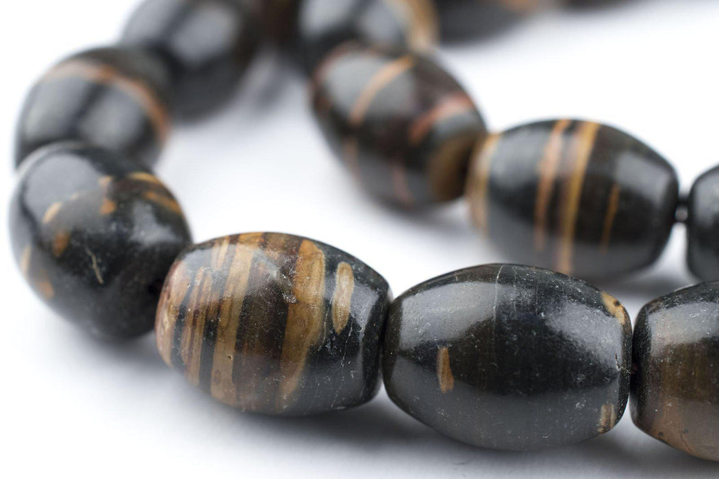 This beautiful strand of African Opal beads is shaped like traditional colodonte trade beads. Rich in color, and smooth to the touch, these high quality African stone beads measure approximately 14 x 10-11mm, with a hole size of 1mm. Strands measure approximately 17 inches in length. Great natural colors!