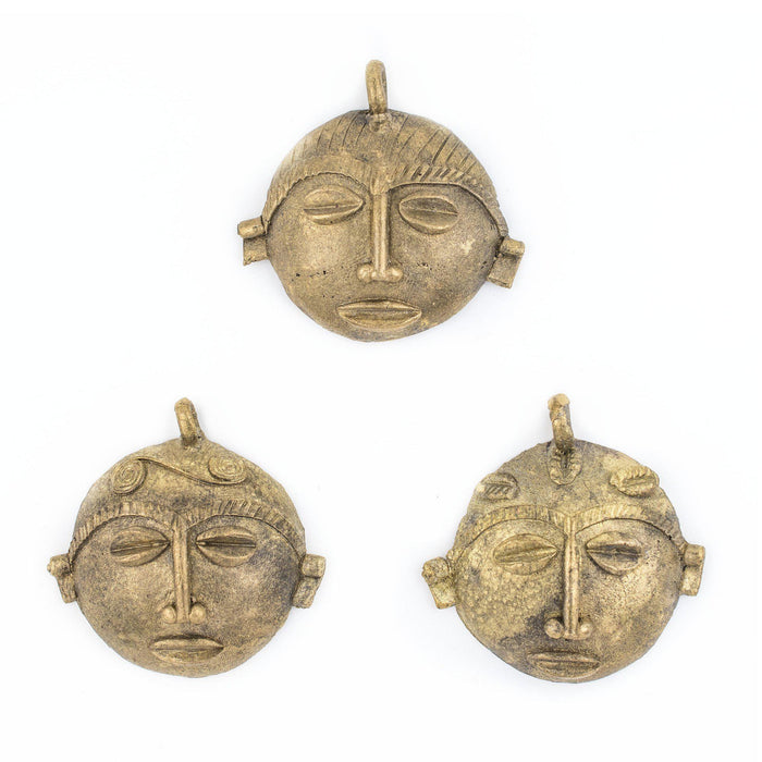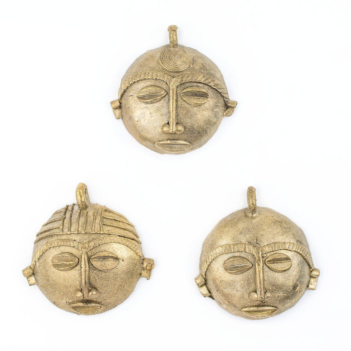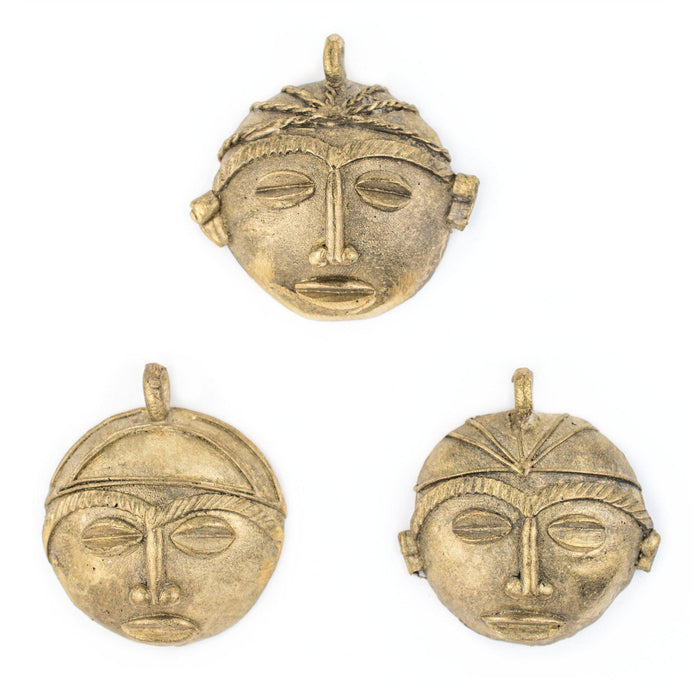 Take a moment to admire the fine attention to detail put into these unique Brass Ghana Mask Pendants. Each Brass Mask Pendant has been intricately handcrafted and carved by a master Ghanian craftsman. These Brass Pendants make for a truly remarkable centerpiece accent on almost any necklace design. These Brass Mask Pendants even look great when worn as is with a simple chain or beading cord. Each individual artisan Brass Pendant is approximately 64-67 x 63-67mm and roughly has a 5-6mm stringing hole. Each Brass Pendant is sold individually. Each pendant is distinctive and special in its own way and may slightly vary from the picture. Get yours today!