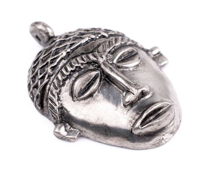 This special pendant was hand-casted in a traditional African mask design. Masks have long been used in various tribal rituals throughout the African continent. This piece is of exceptional quality. Measuring approximately 75 x 55mm, the pendant has a hole size of approximately 3mm. Available in brass and silver finishes. Incorporate into your jewelry designs, or simply throw on a leather cord to wear as is!