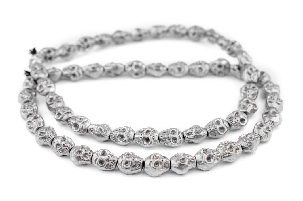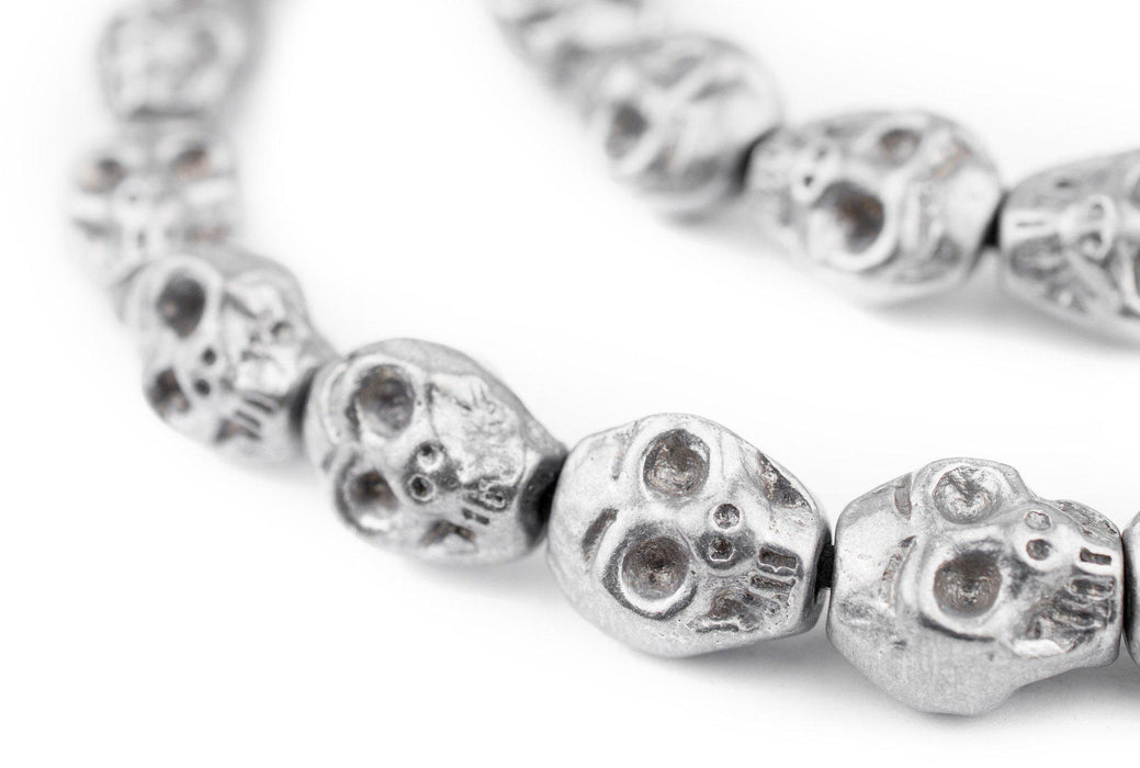 These stylish Aluminum Skull Beads make for the perfect statement bead. Skull beads like this are perfect for adding that extra touch of personality to your custom jewelry designs. To mix up textures we suggest pairing these Aluminum Skull Bead with our Howlite Skull beads. Each artisan strand is about 16" in length. Each handcrafted bead is approximately 14 x 12mm with a roughly 2mm hole. Multiple strands pictured. Each strand is sold individually. Grab a strand for yourself today!