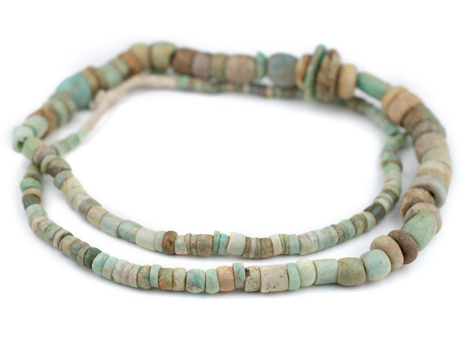 Admire this beautiful strand of pastel-toned Amazonite Stone Beads from Mali West Africa. Beads such as these have been prized for their unique color since Neolithic times. While the exact age of the Amazonite beads is not precisely known, similar beads from both Mauritania and Mali have been dated to more than 2000+ years old. Look carefully and you will see the unique handmade character of these stone beads. This is an exceptional one-of-a-kind piece suitable for bead collectors and bead aficionados alike! Only one strand available.