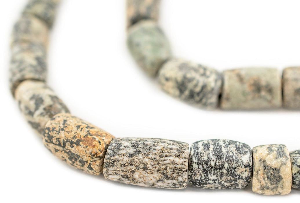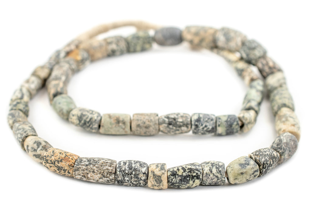 These unusual stone beads are said to be hundreds of years old. Each bead has been individually shaped from granite stone and arranged nicely as a graduated strand. Old stone beads such as these are found in the shifting sands of Mali, a country that borders the great Saharan Desert. Ancient Malian cities such as Djenne and Timbuktu have gained an almost fabled status due to their importance for hundreds of years as important centers of learning and trade. Each exceptionally long strand of Mali Granite beads measures almost 40" in length. These unique beads are suitable for collectors, bead connoisseurs, or jewelry designers with a discerning eye. You will receive the exact strand pictured. No two strands are alike. Each bead measures approximately 5-44 x 4-16mm, with a hole size of approximately 1-2mm. You will receive one strand measuring approximately 30". There are around 50 beads on each strand.