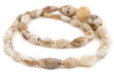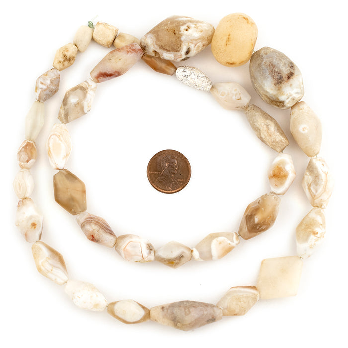 These old stone beads have endured the sands of time. Natural stone was among the earliest materials used by ancient cultures to make beads for personal adornment. Beads such as these are discovered in the ground where they have sometimes laid undisturbed for hundreds if not thousands of years. These specific beads were found in Mali West Africa, a region with a long and storied history of trading. These beads are truly one of a kind! You will receive the exact strand pictured. Each bead measures roughly 9-31 x 7-23mm, with a hole size of about 2-3mm. You will receive one strand measuring approximately 26". Grab this strand for yourself today. Note that while the material is said to be of old, possibly ancient origin, the precise age of the beads has not been independently verified.
