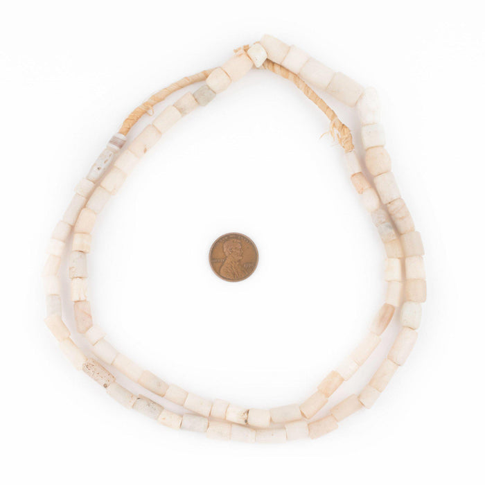 These unusual tube beads are said to have considerable age and are handmade from natural stone. Old beads such as these are sometimes found by farmers or or other people when they dig in the ground. Ancient Mali was the site an ancient and important empire and it's location made it a significant stop for trans-Saharan trade. These handmade beads are likely made from white quartz. Each strand measures approximately 33" in length with individual beads 6-15mm wide by 5-10mm diameter and a hole size of approximately 2mm. Each strand is unique and may vary slightly from strand pictured.