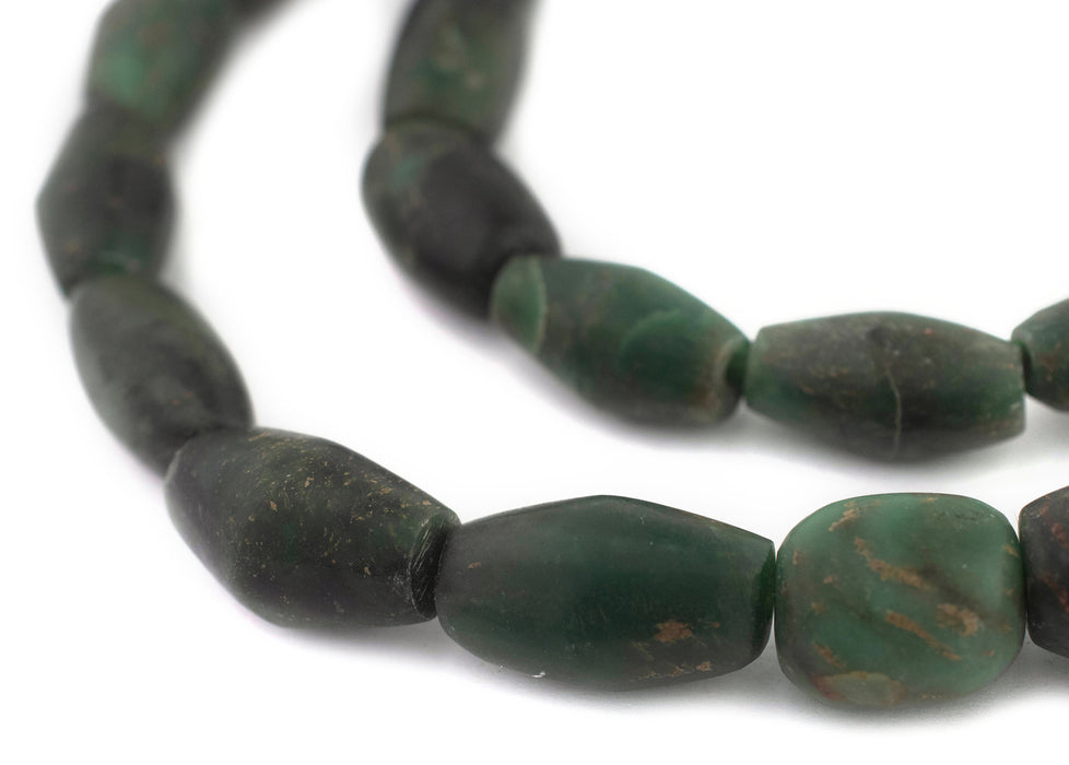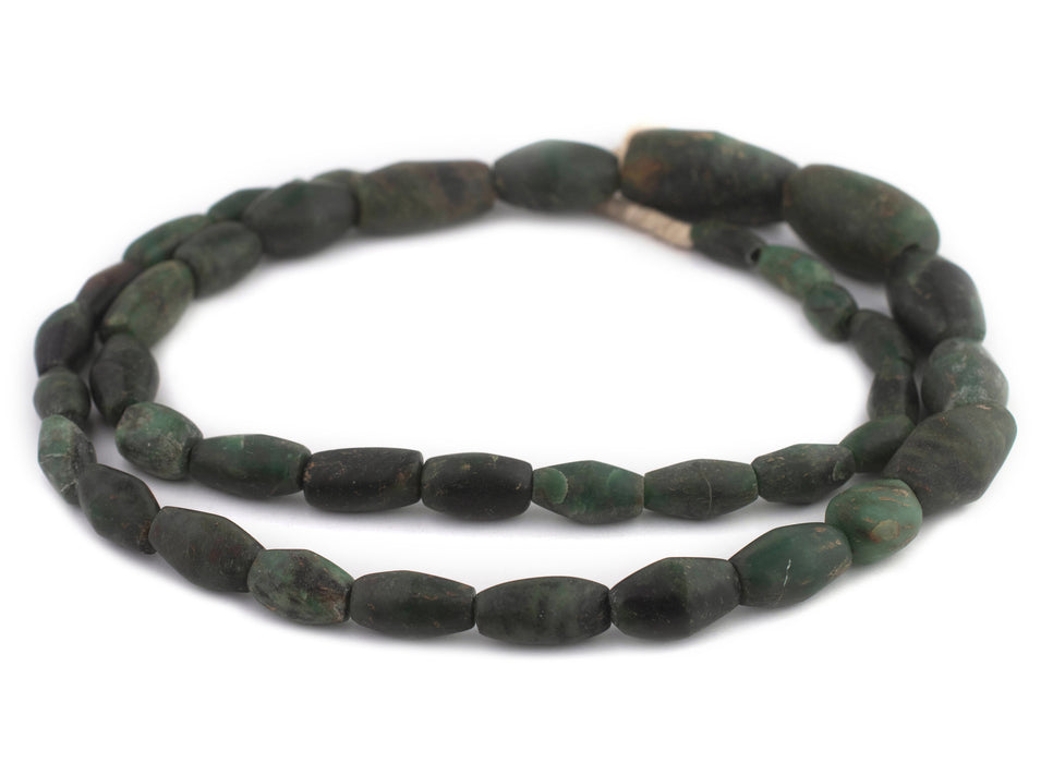 Admire this beautiful strand of Serpentine Stone Beads from Mali West Africa. Beads such as these have been prized for their unique color since Neolithic times. While the exact age of the Serpentine beads is not precisely known, similar beads from both Mauritania and Mali have been dated to more than 2000+ years old. Look carefully and you will see the unique handmade character of these stone beads. This is an exceptional one-of-a-kind piece suitable for bead collectors and bead aficionados alike! Only one strand available.