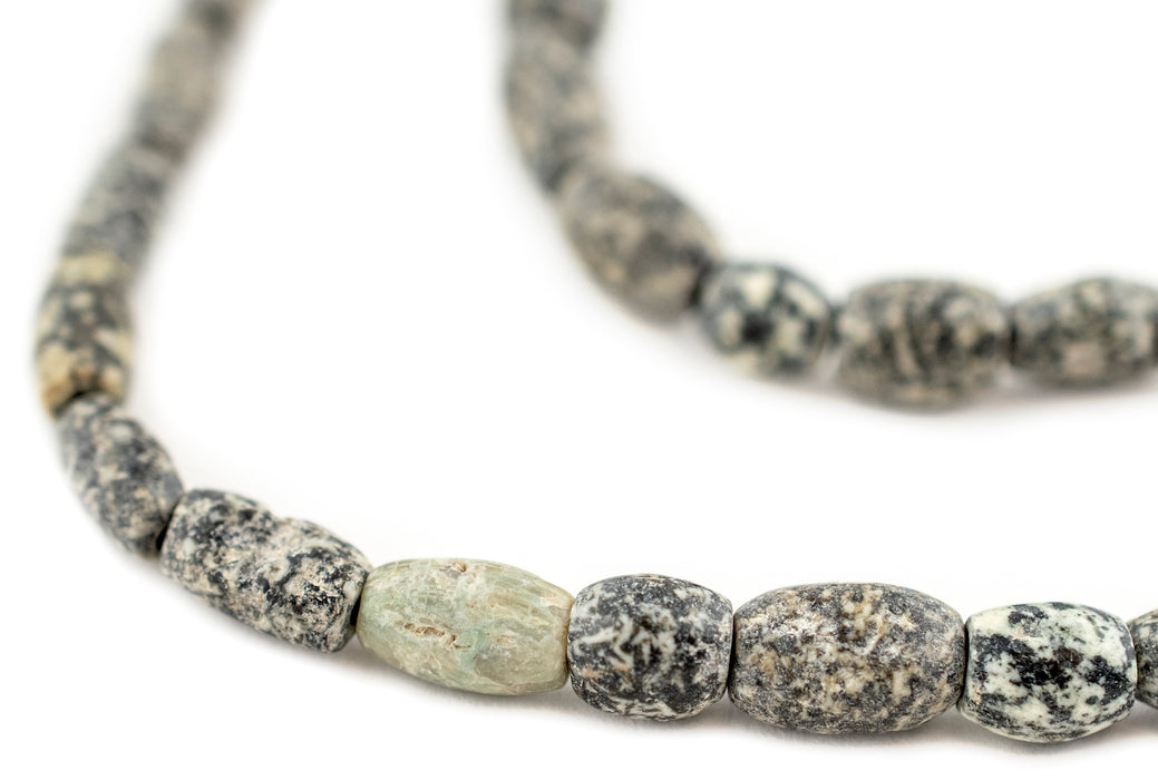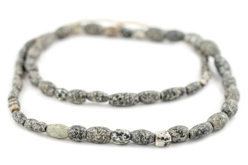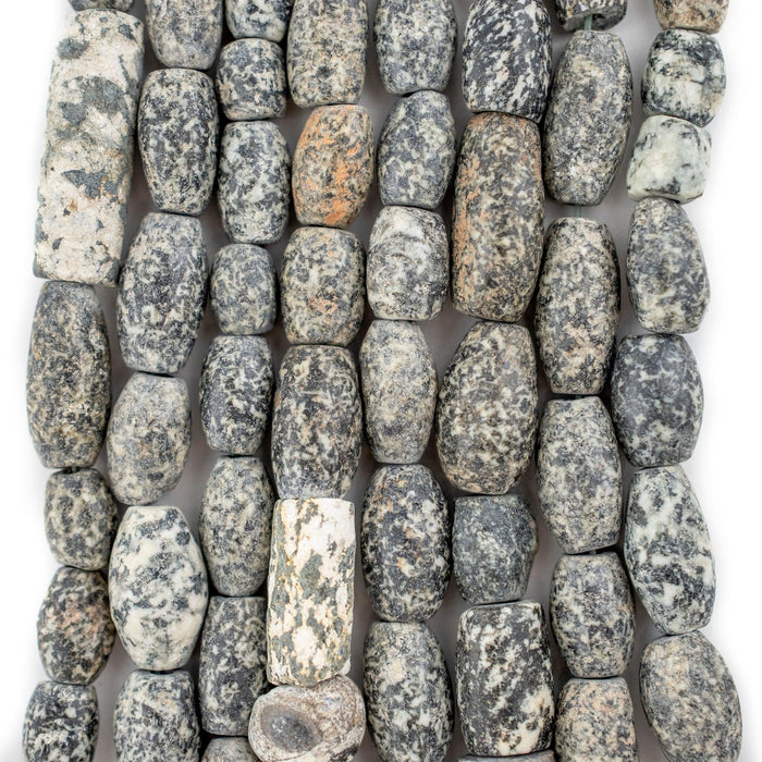 These unusual stone beads are said to be hundreds of years old. Each bead has been individually shaped from granite stone and arranged nicely as a beaded strand. Old stone beads such as these are found in the shifting sands of Mali, a country that borders the great Saharan Desert. Ancient Malian cities such as Djenne and Timbuktu have gained an almost fabled status due to their importance for hundreds of years as important centers of learning and trade. Each strand of Mali Granite beads measures almost 28" in length. These unique beads are suitable for collectors, bead connoisseurs, or jewelry designers with a discerning eye. You will receive a strand similar to that pictured.