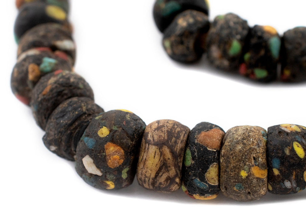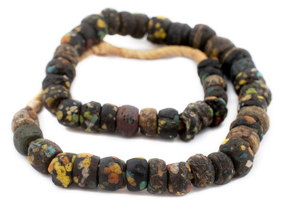 Take a look at this amazing strand of rare black Hebron beads, brought here from Africa and are sometimes referred to as "Kano Beads". They are said to have been made in Hebron before 1800. The strand measures approximately 7-15 x 12-21mm with beads measuring approximately 7-15 x 12-21mm. This unusual black color is exceptionally rare. Some beads may be chipped due to age. You will receive the exact strand pictured. Very hard to find.