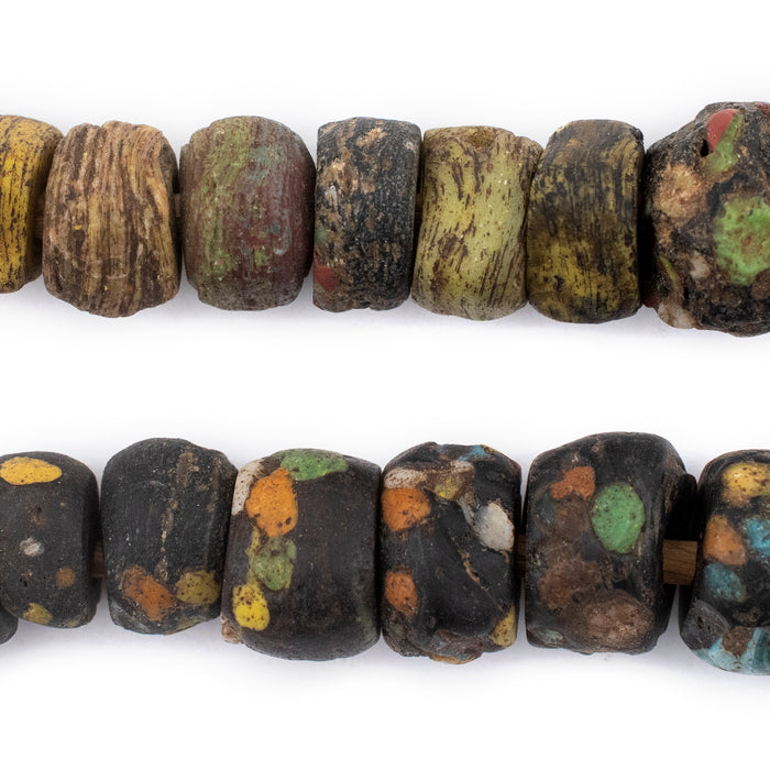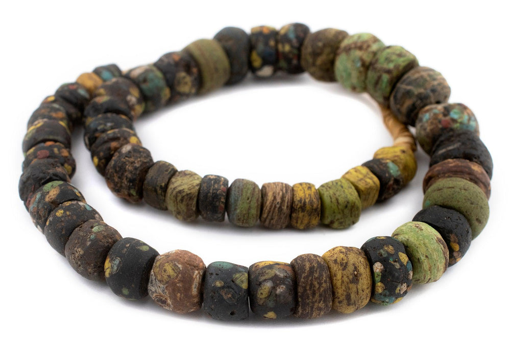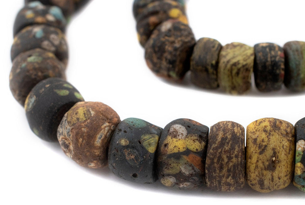 Take a look at this amazing strand of rare black Hebron beads, brought here from Africa and are sometimes referred to as "Kano Beads". They are said to have been made in Hebron before 1800. The strand measures approximately 7-16 x 11-21mm with beads measuring approximately 7-16 x 11-21mm. This unusual black color is exceptionally rare. Some beads may be chipped due to age. You will receive the exact strand pictured. Very hard to find.