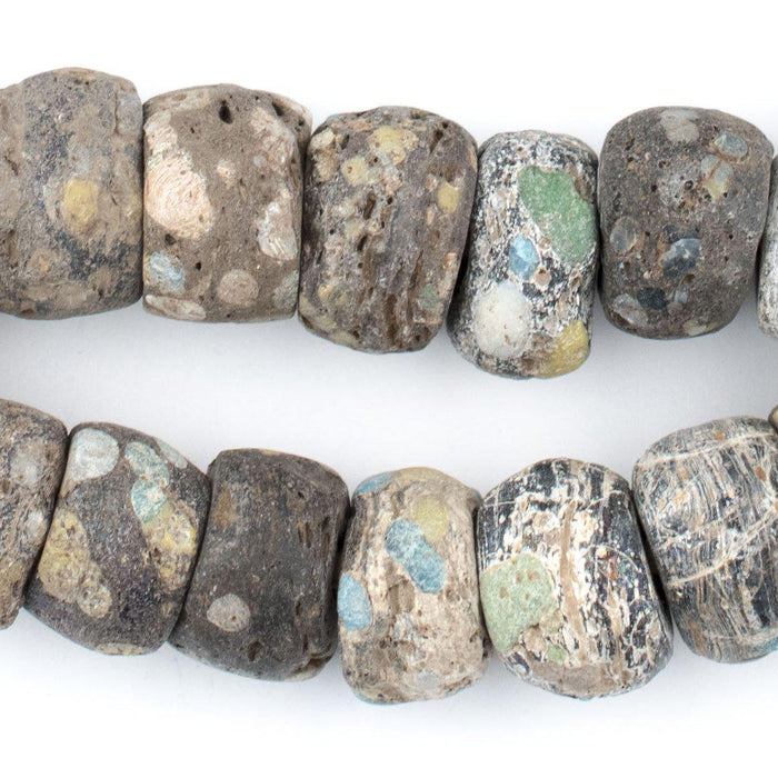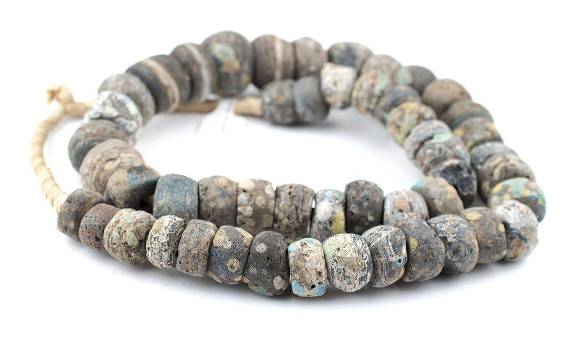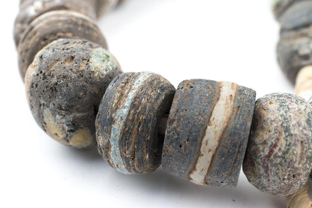 Take a look at this amazing strand of rare black Hebron beads, brought here from Africa and are sometimes referred to as "Kano Beads". They are said to have been made in Hebron before 1800. The strand measures approximately 26" with beads measuring from 13-22mm. This unusual black color is exceptionally rare. Some beads may be chipped due to age. Each strand is unique and may vary slightly from photo. Please contact us for additional details. Very hard to find.