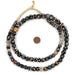 This stunning strand features an exceptional assortment of antique black Venetian fancy beads, including multiple varieties of flower beads, classic thousand eye beads, and a striking selection of skunk beads — among them, the highly sought-after raised dot skunk beads, prized for their dimensional texture and rarity.