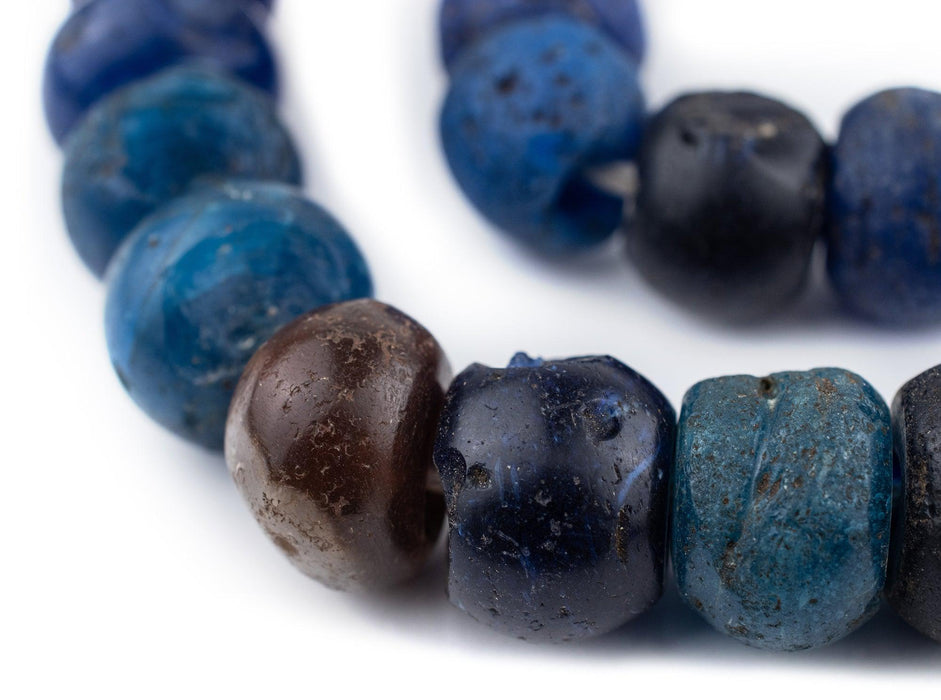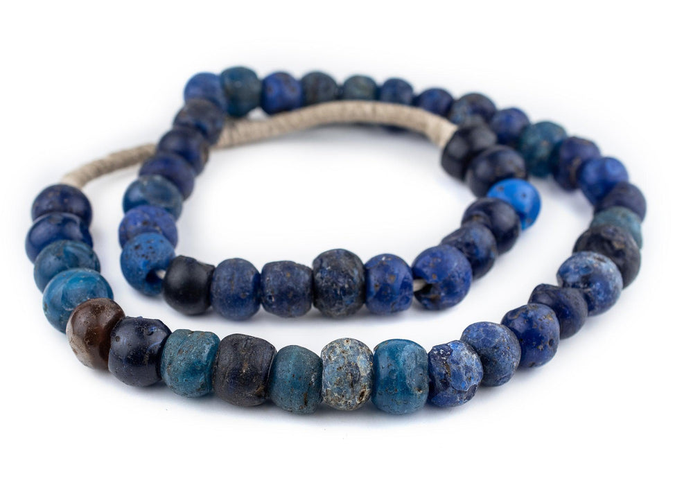 Fabulous strand of old round wound trade beads also known as Dutch Dogons from the African Trade. Some of the earliest hand wound beads traded in Africa were originally produced in Holland. Beads such as these were often used by the Dogon people for dowries and were passed down by generations of Dogon women for over 200 years. These are rare beads that truly show the wear of time! These African trade beads have traveled at least three continents and have graced numerous owners. This is an exceptionally long strand measuring 36" in length. Traditional African beads such as this are often strung and worn on long strands. Some beads may be cracked or chipped due to age.
