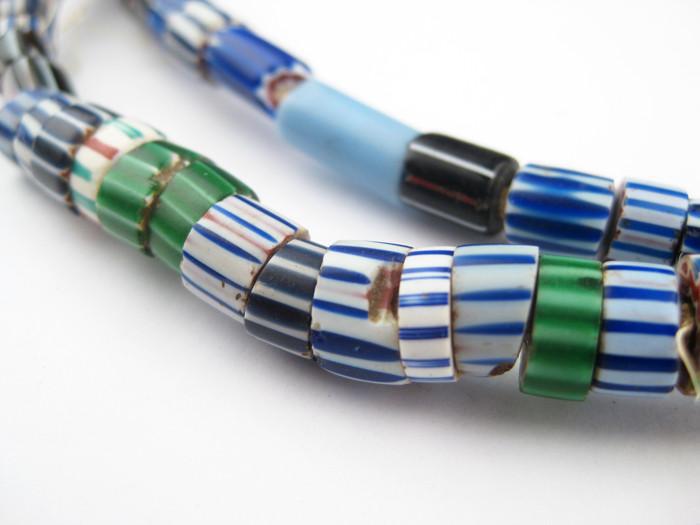 Take a look at this unique strand of old venetian chevron beads. These beads were traded in Africa and show some signs of age such as chips and wear. You will receive the exact strand pictured.