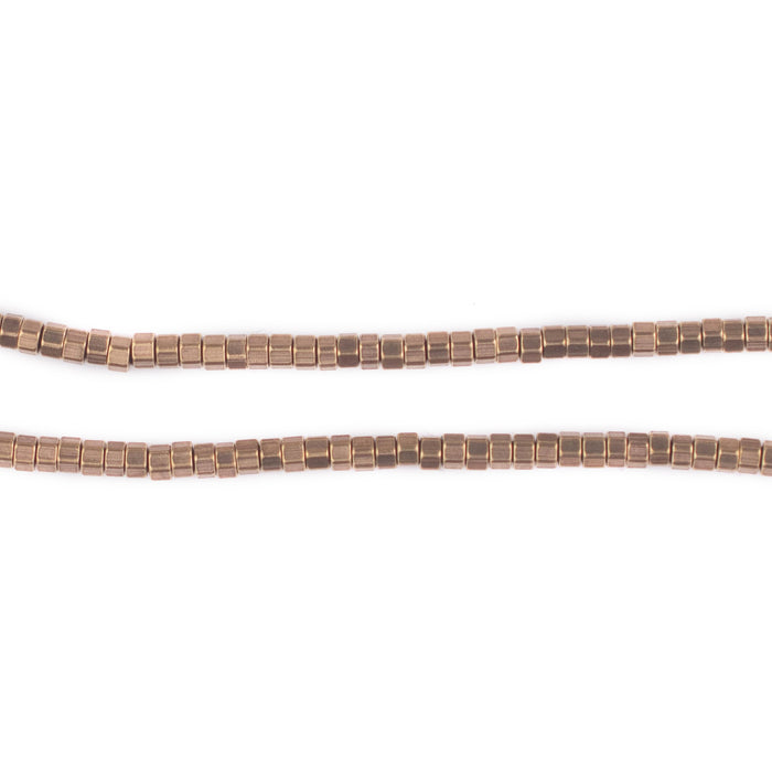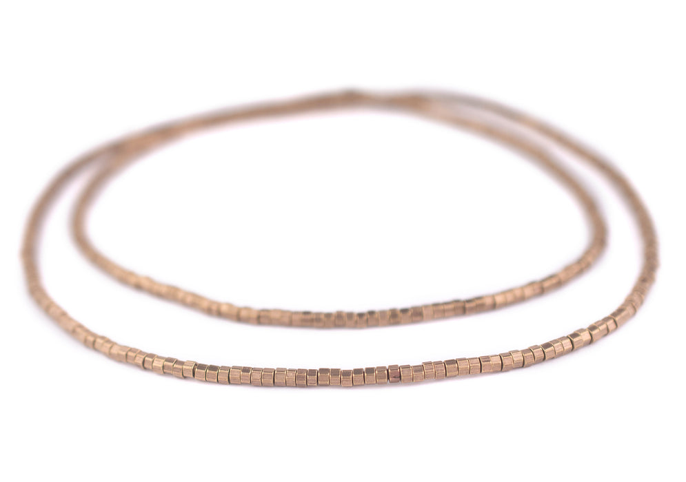Beautiful strand of high quality, ethnic brass beads measuring 24" in length. Individual beads measure 1-2 x 2-3mm in size, with holes measuring approximately 1mm. Each strand includes approximately 340 beads. These highly versatile beads make great spacers, or may be used to accent your unique beaded designs. Feel the solid weight of these beads in your hands, and you'll surely appreciate their fine quality.