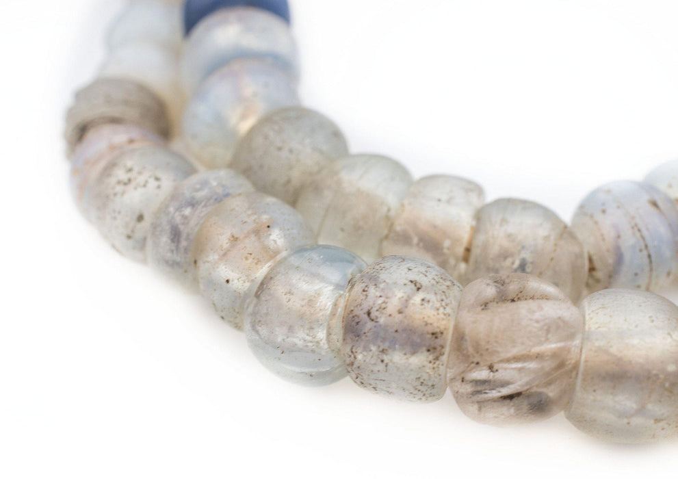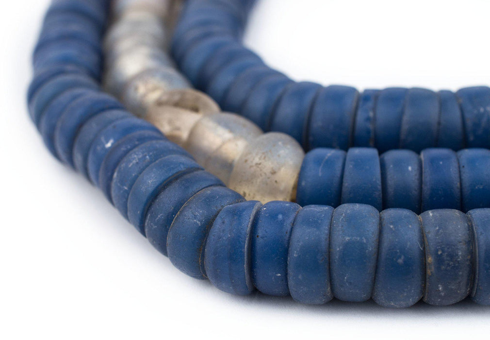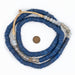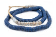 This unusual strand is comprised of both Blue Dogon Beads and Translucent Moon Beads. These are a more rare variety of Dogon bead that is opaque and disk-shaped rather than ring-like. The beads have been strung in a traditional length and the long strand meaures approximately 43" with Individual beads measuring 4-7mm wide and 9-12mm in diameter. Hard to find.